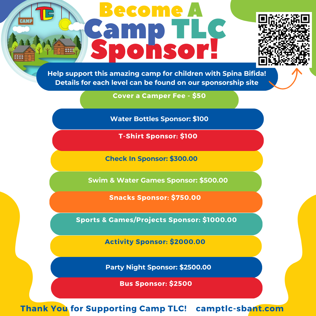 We love Camp TLC! Help support this amazing week by sponsoring Camp TLC Programs and Services. Most of our campers are required to check in at Scottish Rite before they head down to camp on buses chartered by SBANT. They have a check-in process to follow, including appointments with medical, wheelchair and equipment checks, etc. When they are done, they hang out in the lobby until it is time to load the buses at 11:45. Sponsorship levels beginning at the $300 level include having a table to greet families during this time, so being a part of this gives you great access to our families, campers and volunteers to promote your company.