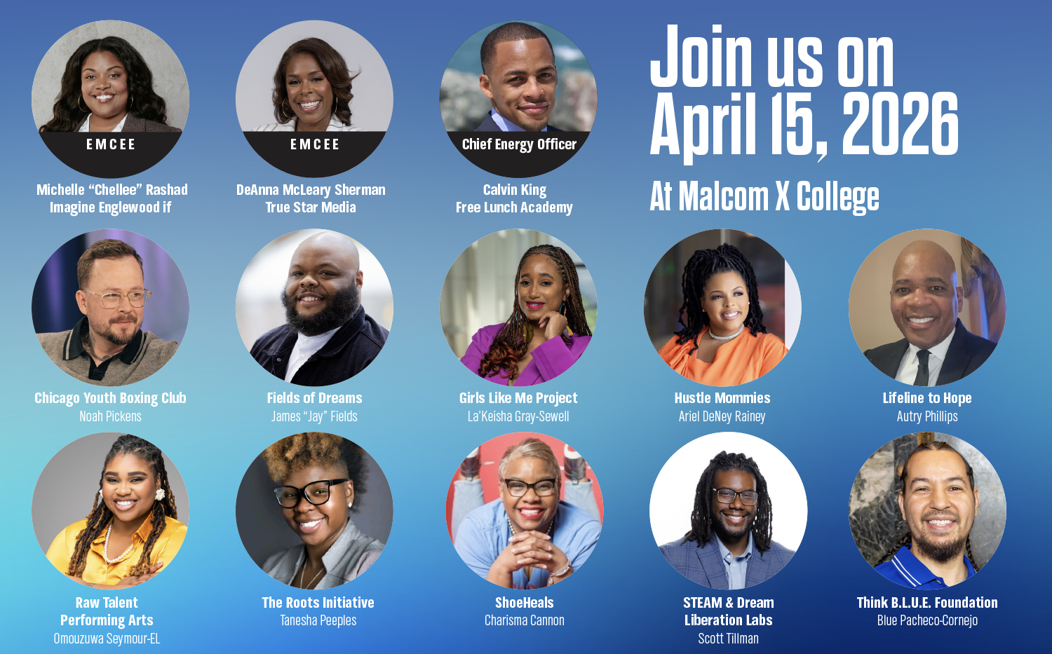 We're celebrating 10 years of Fast Pitch and we want you to join us! Show your support for 10 community-based organizations whose leaders are making an outsized impact in their South and West Side communities by joining us on April 15th at Malcolm X College.
