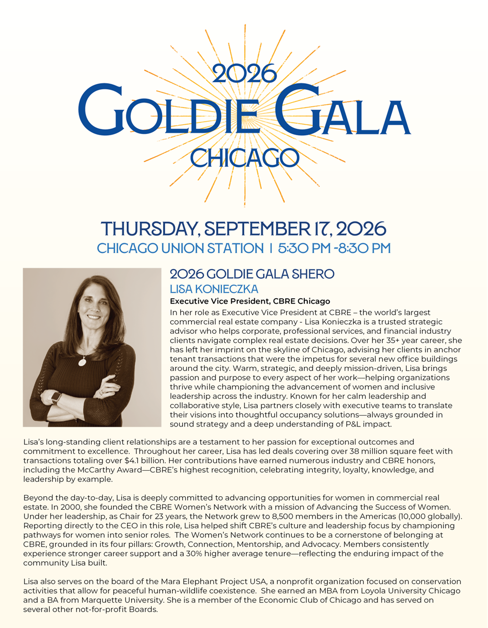 09/17/2026 05:30:00 PM09/17/2026 08:30:00 PMAmerica/Chicago2026 Goldie Gala - ChicagoChicago Union Station - Great Hall 500 W Jackson Blvd Chicago, Illinois 60661