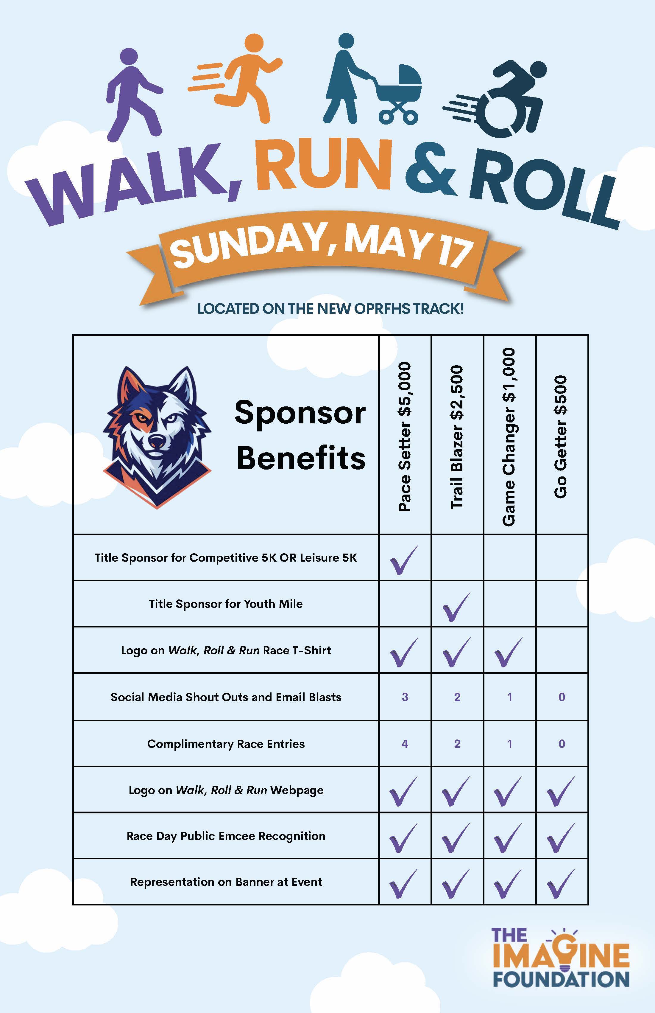 Walk, Run & Roll is a community celebration and fundraiser benefiting the Oak Park and River Forest High School Imagine Foundation. This family-friendly event brings together students, families, alumni, and neighbors at the OPRF track in support of the school at the heart of our community.