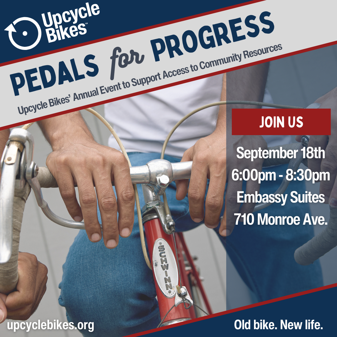The Pedals for Progress program will highlight Upcycle Bikes' efforts and growth, individual and partner impact stories, and opportunities to support the large community need for an affordable mode of transportation.