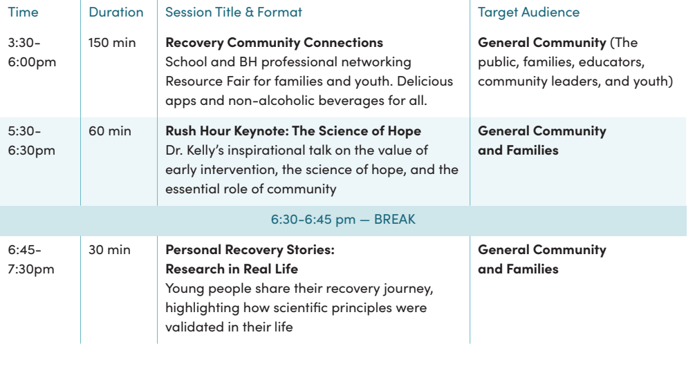 Join national experts, youth, and community leaders for an evening of learning, collaboration, and hope—exploring what truly sustains long-term recovery in young people. Featuring Dr. John Kelly of Harvard University’s Youth Recovery Research Program (https://youthrecoveryanswers.org) world-renowned experts on youth Substance Use Disorder and recovery.